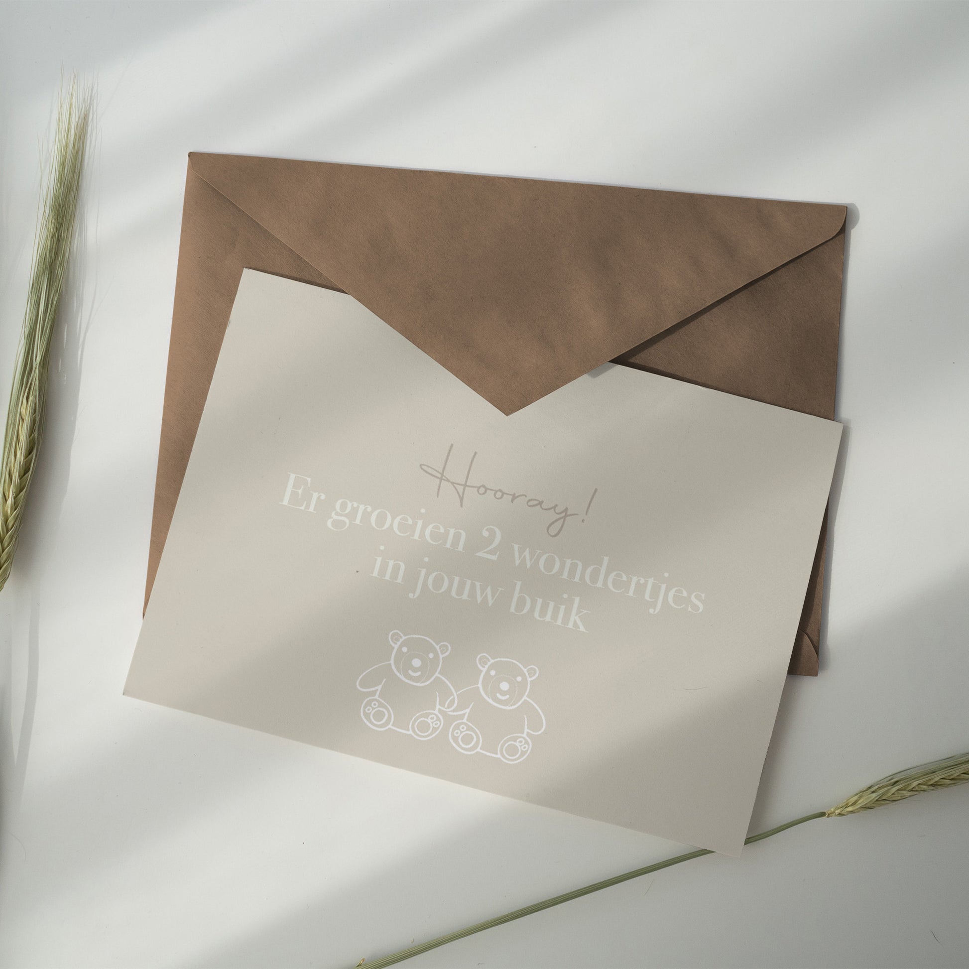 Met een persoonlijke boodschap maak je dit kaartje extra bijzonder. Ideaal voor vrienden, familie of collega’s die in verwachting zijn van een tweeling.
